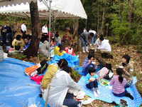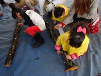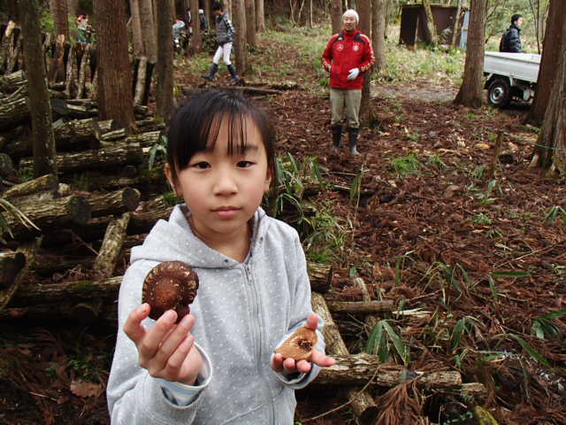 多くの仲間と一緒にしいたけを通して、森林体験を楽しみました。