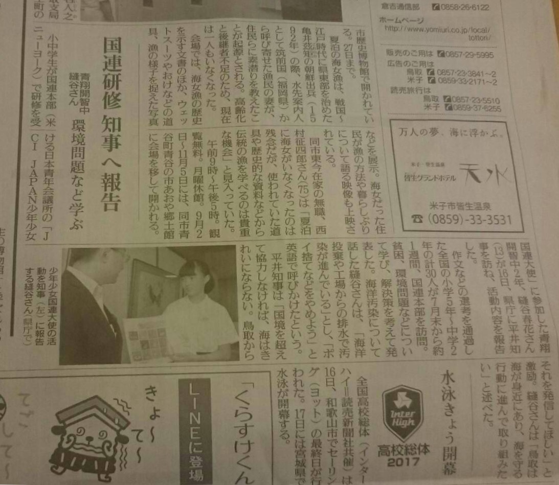 鳥取市深沢市長に引き続き、8/16には鳥取県平井知事へも報告へ!