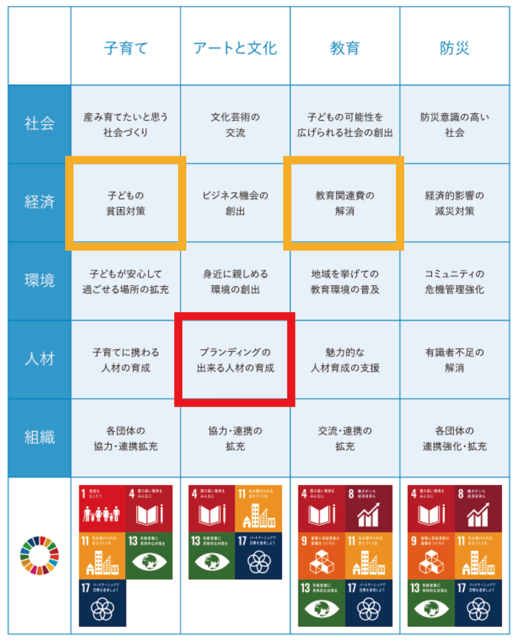 1つ目の課題は、(アートと文化)×人材です。「ブランディングできる人材の育成」
